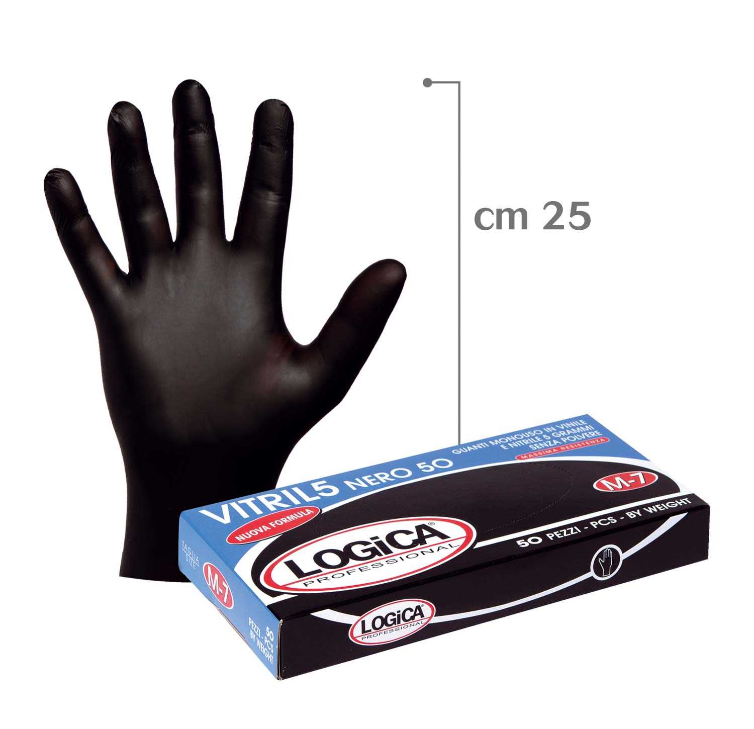 DESCRIZIONE: Guanti monouso senza polveri. Composto da una speciale mescola di vinile con componente al 20% di nitrile che garantisce ottima resistenza ed elasticità. Pesantezza 5 gr. (tg. M). Finitura esterna liscia. Ambidestro. Lunghezza 25 cm.