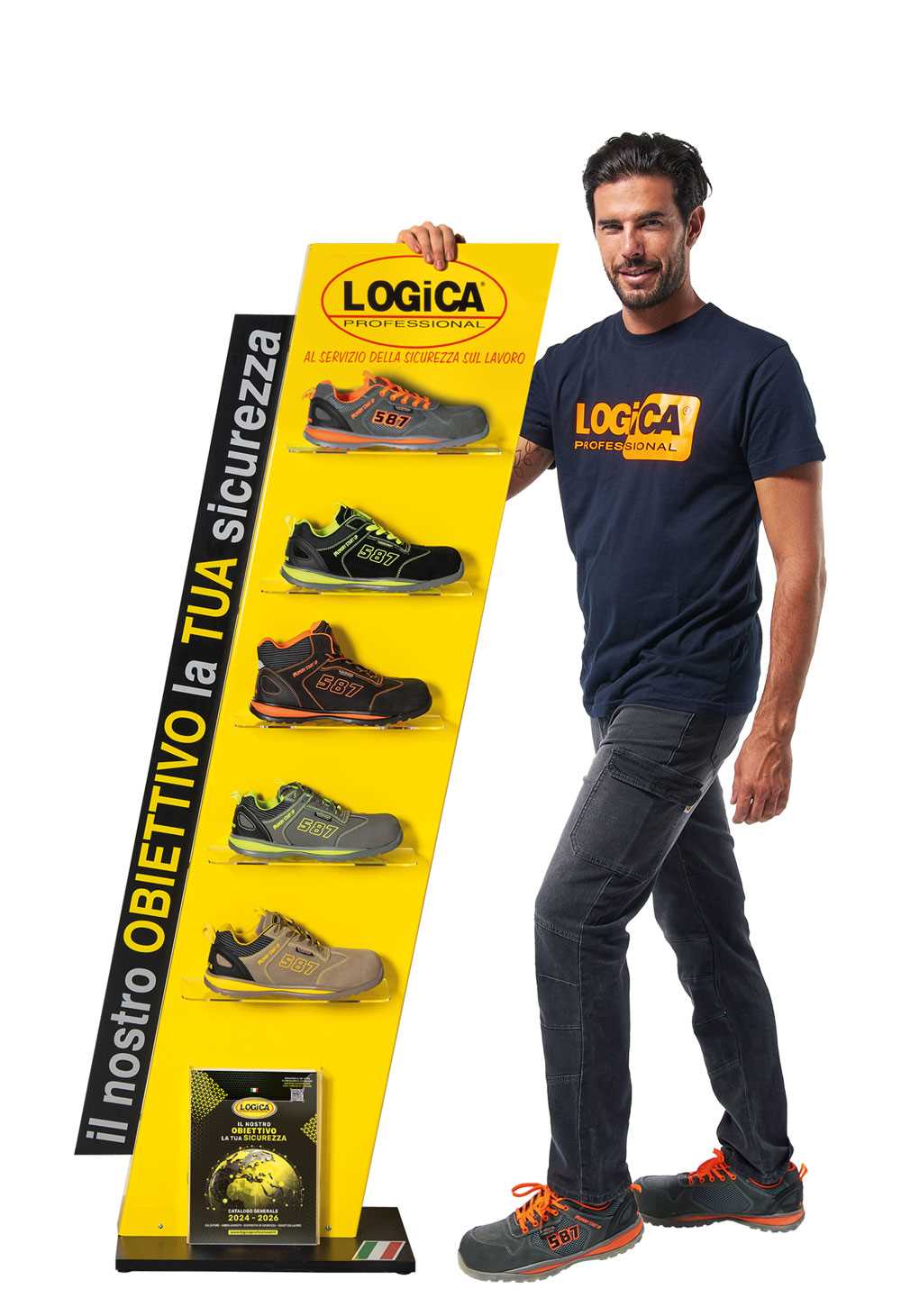 DESCRIZIONE: Espositore Diagonale "Logica" per Calzature a 5 posizioni in ABS + porta catalogo