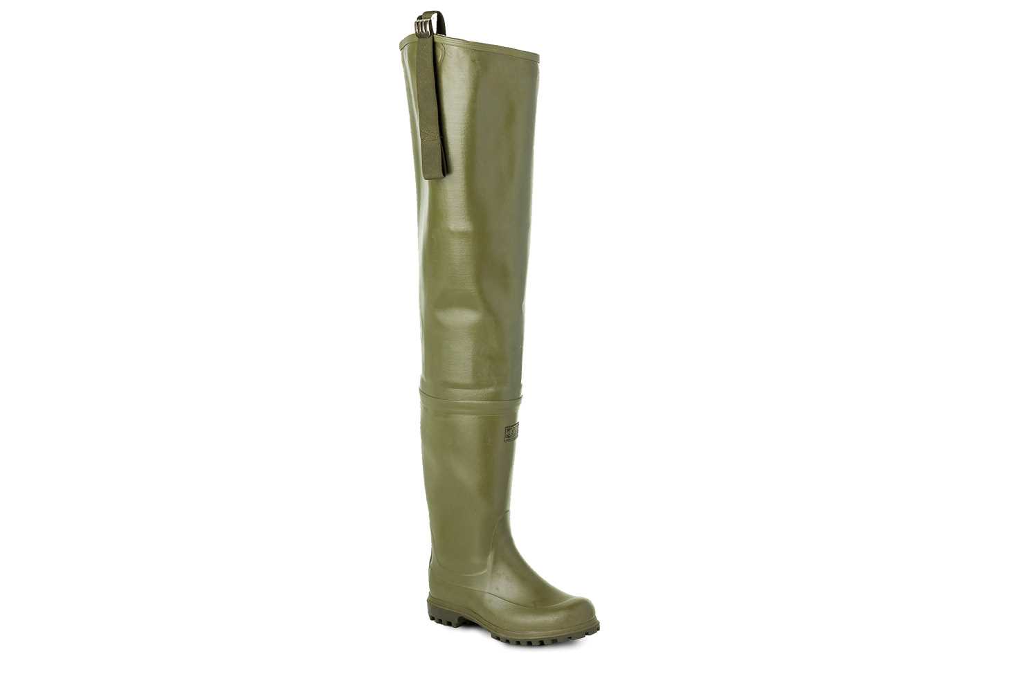 TOMAIA: Stivale tuttocoscia in mescola gomma verde di puro caoutchouc. Altezza sotto il cavallo, completo di lacci per aggancio in cintura. Ideale per caccia e pesca.