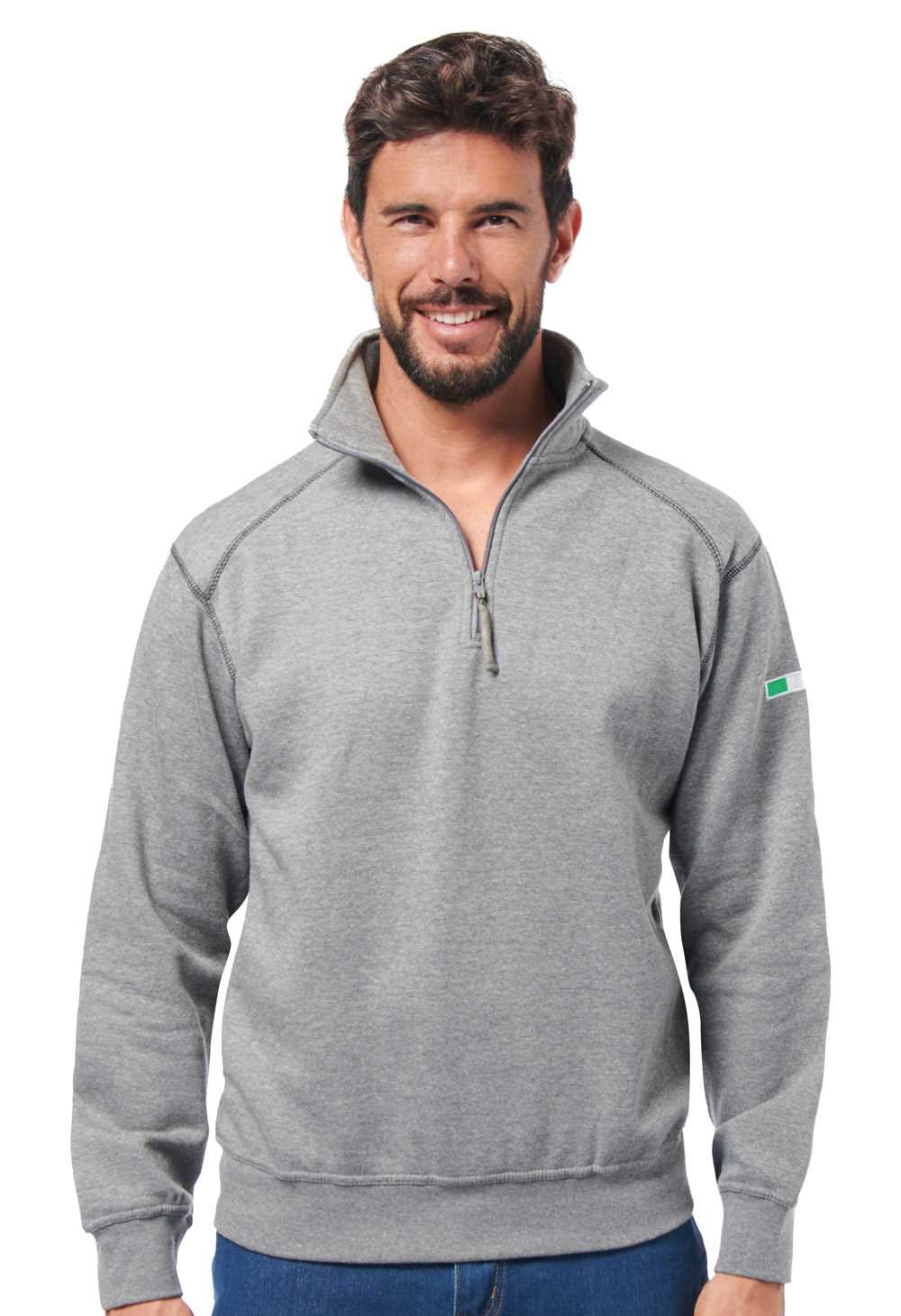 DESCRIZIONE: Felpa zip corta con cuciture in contrasto. Rinforzo in materiale antistappo nero sul gomito. Polsini e fondo vita in maglia elastiaca. Bandierina italiana ricamata sul braccio sinistro.