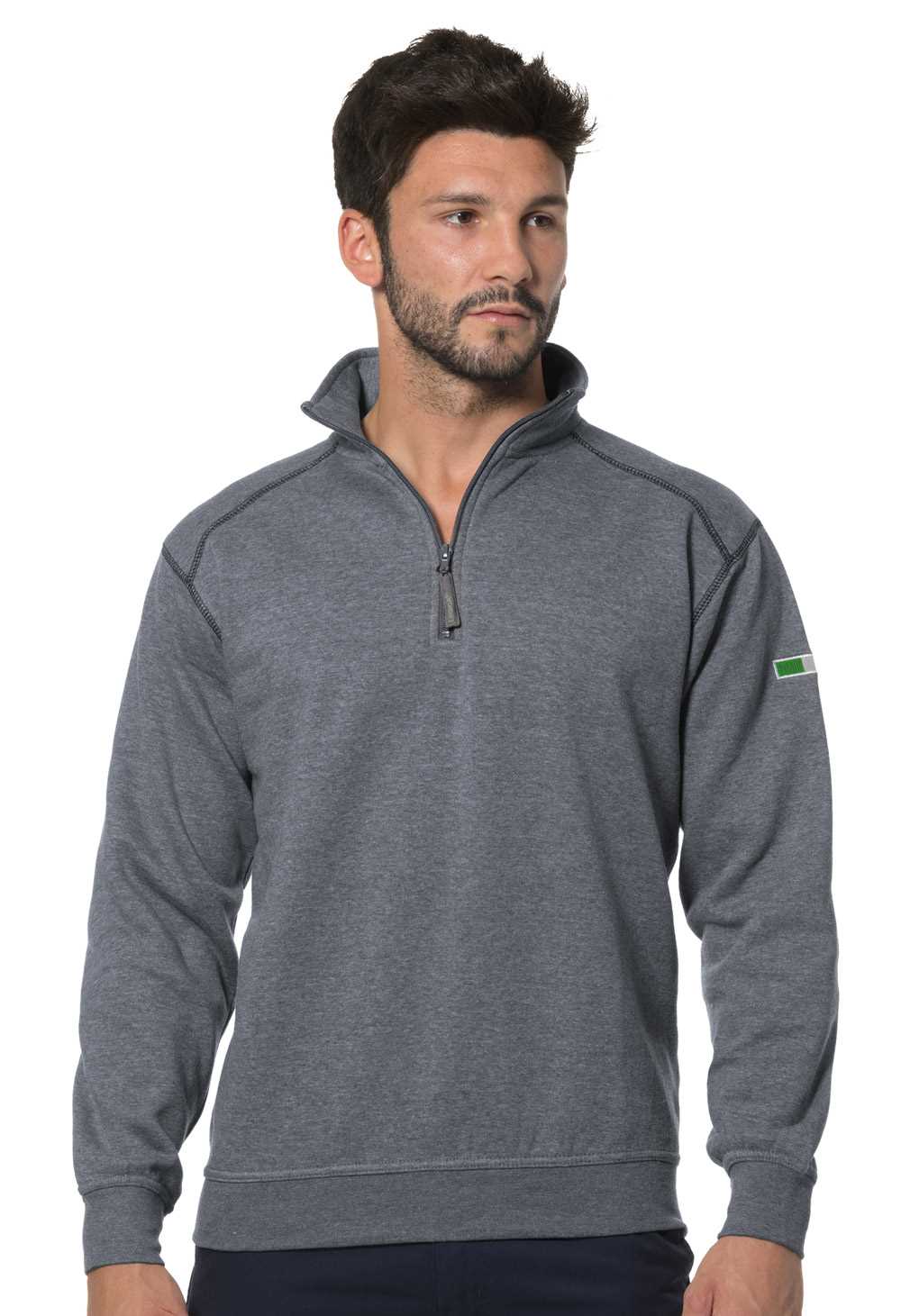 DESCRIZIONE: Felpa zip corta con cuciture in contrasto. Rinforzo in materiale antistappo nero sul gomito. Polsini e fondo vita in maglia elastiaca. Bandierina italiana ricamata sul braccio sinistro.