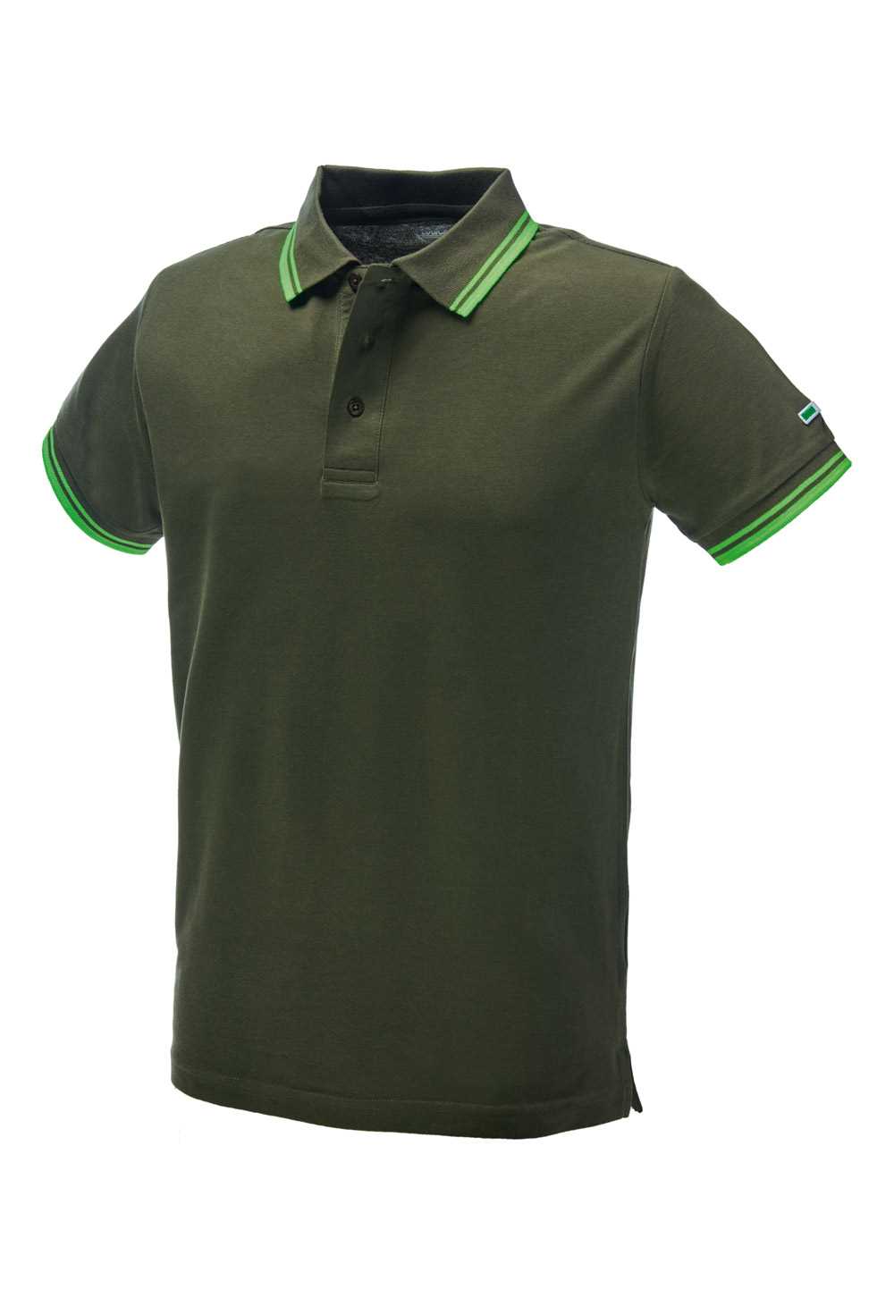 DESCRIZIONE: Polo piquet manica corta con tre bottoni al collo. Bandierina italiana ricamata sul braccio sinistro. Righe con colori in contrasto su manica e colletto.