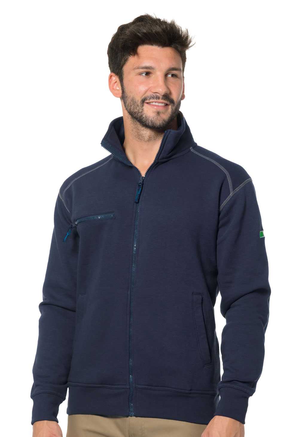DESCRIZIONE: Felpa zip lunga con cuciture in contrasto. Rinforzo in materiale antistrappo nero sul gomito. Tasche laterali aperte, e taschino lato destro con zip. Polsini e fondo vita in maglia elastica. Bandierina italiana ricamata sul braccio sinistro.