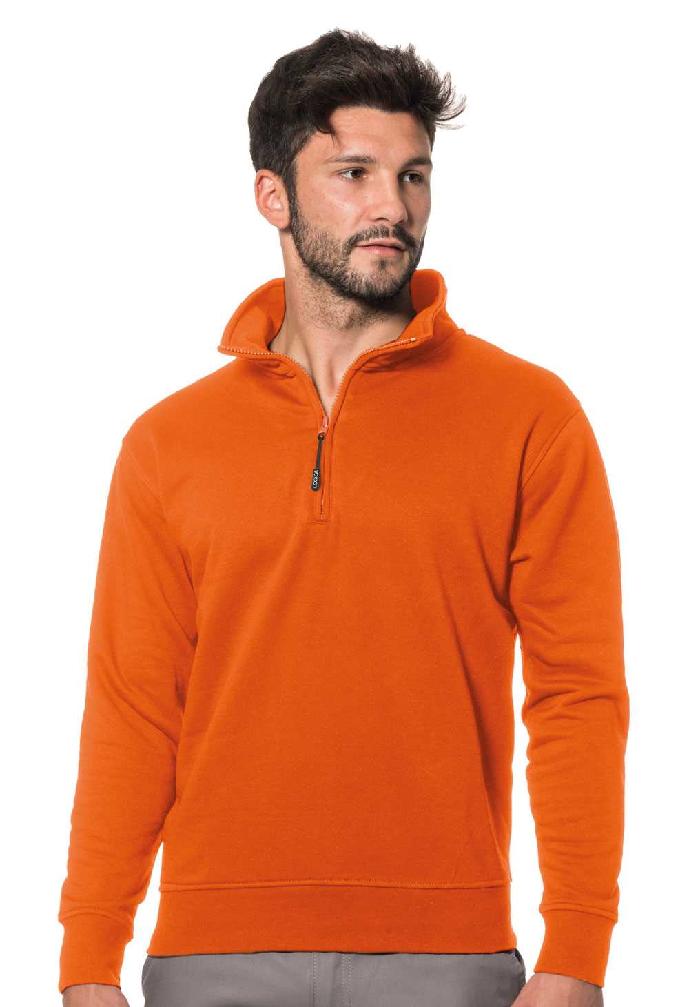 DESCRIZIONE: Felpa monocolore con zip corta. Collo a lupetto. Polsini e fondo vita elasticizzati. Nastro di rinforzo al collo.