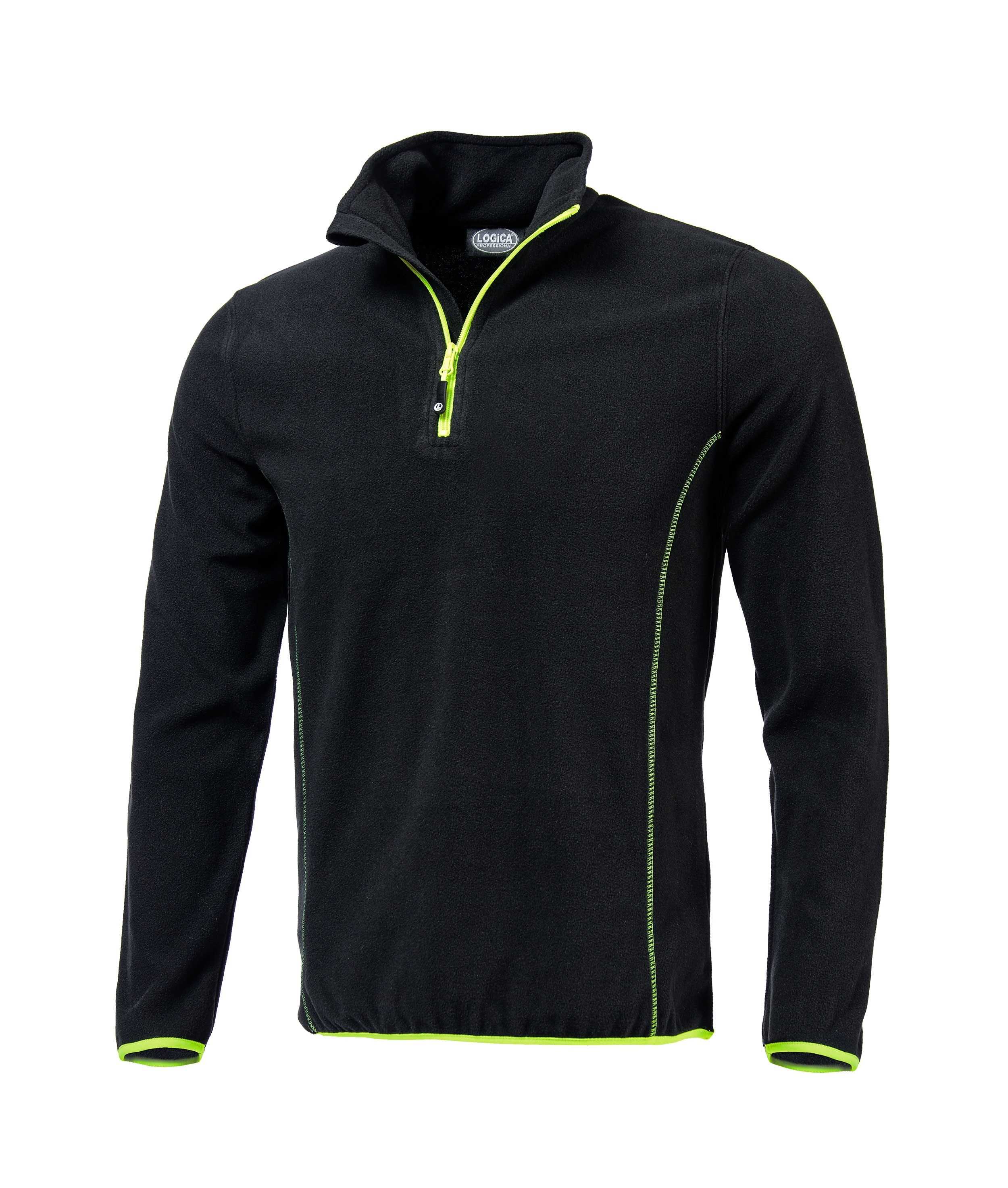 DESCRIZIONE: Micropile termico con zip corta, rifiniture in contrasto in vita, polsini e fondo elasticizzato.