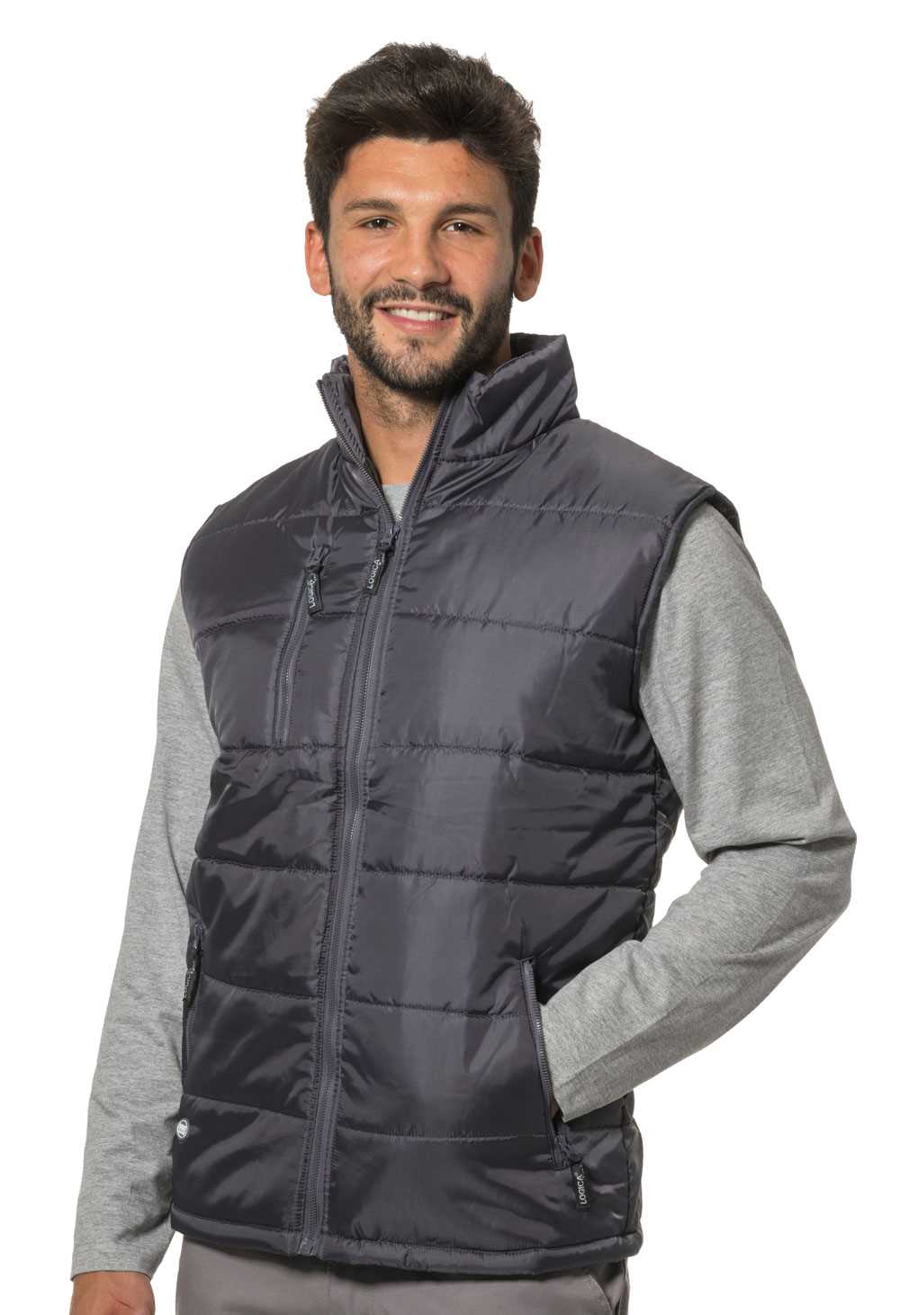 DESCRIZIONE: Gilet imbottito antipioggia, con due tasche laterali e tasca sul petto a destra. Chiusura con zip. Interno in nylon. Una tasca interna