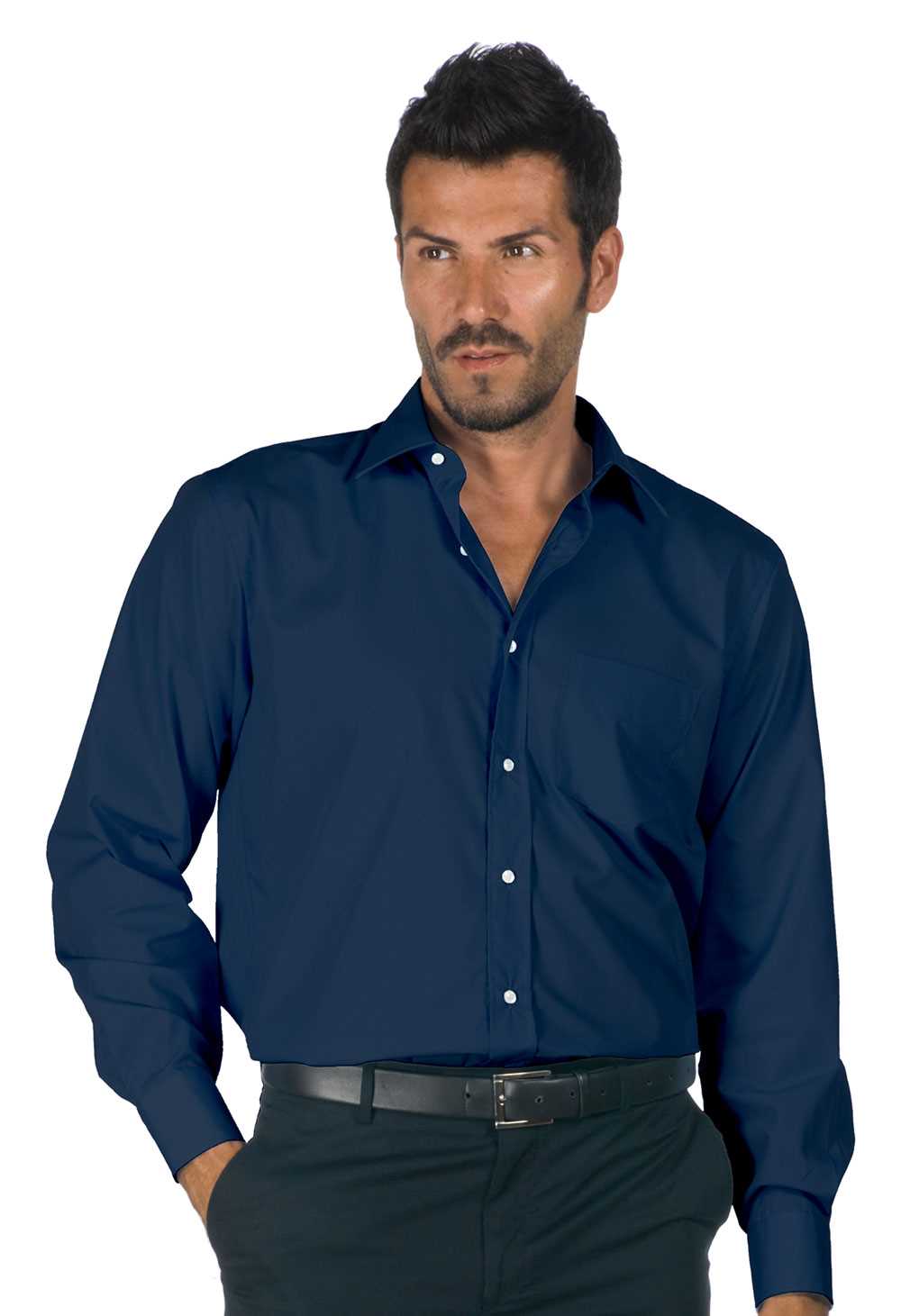 DESCRIZIONE: Camicia manica lunga, stile elegante, con colletto alla francese con stecche. Bottoni tono su tono. Taschino lato sinistro. Carrè posteriore con due pieghe laterali. Cuciture a doppia piega. Polsino regolabile, e due bottoni di ricambio. Orlo stondato.