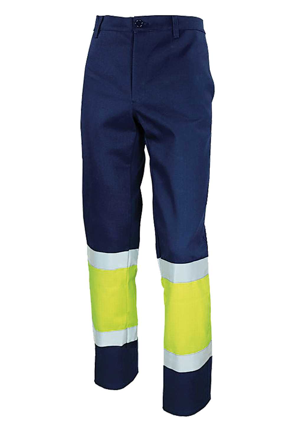 DESCRIZIONE: Pantalone Multiprotezione alta visibilità chiusura con zip coperta da patta. Elastico in vita sul posteriore. Due tasche laterali a filetto ed una dietro. Due bande rifrangenti che circondano le gambe. Doppie cuciture nei punti di maggior sforzo.