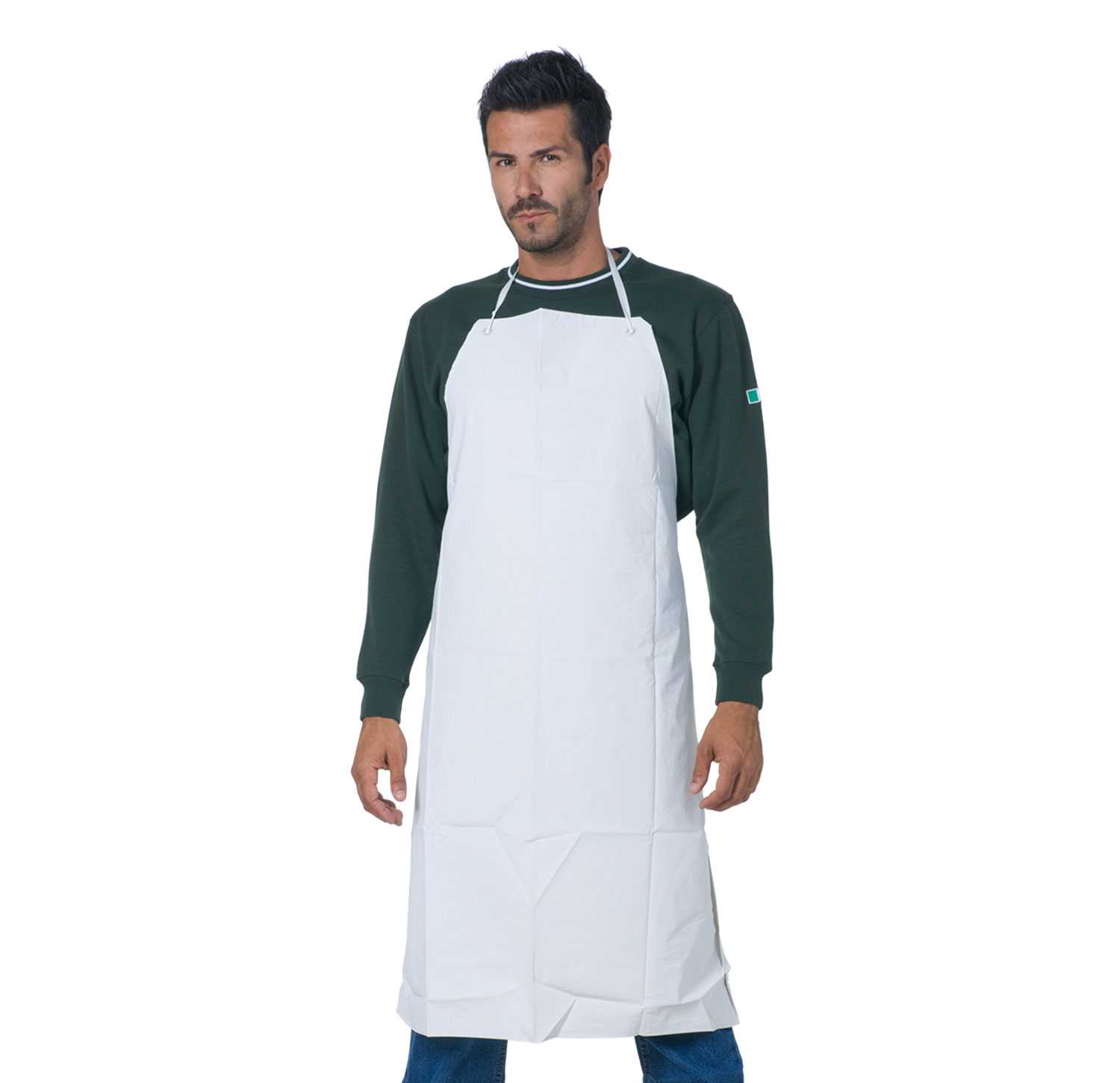 DESCRIZIONE: Grembiule impermeabile in PVC leggero. Chiusura con laccetti al collo e in vita.
