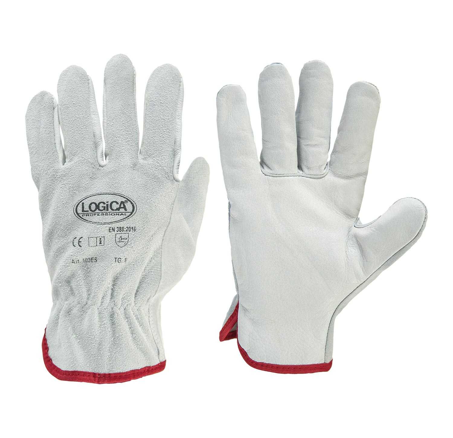 DESCRIZIONE: Guanto con palmo in pelle fiore e dorso in crosta. Fondo orlato. Con elastico stringipolso. Lunghezza totale 25 cm.