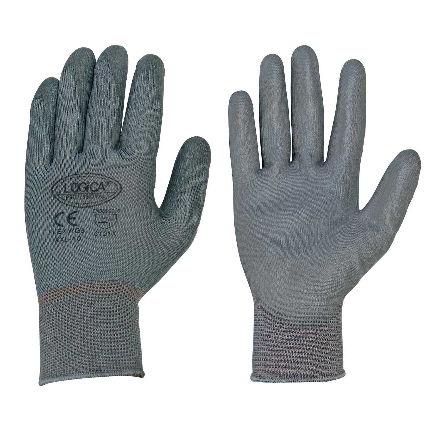 DESCRIZIONE: Guanto in filo continuo di poliestere, palmo ricoperto in poliuretano. Dorso areato. Polsino elasticizzato.