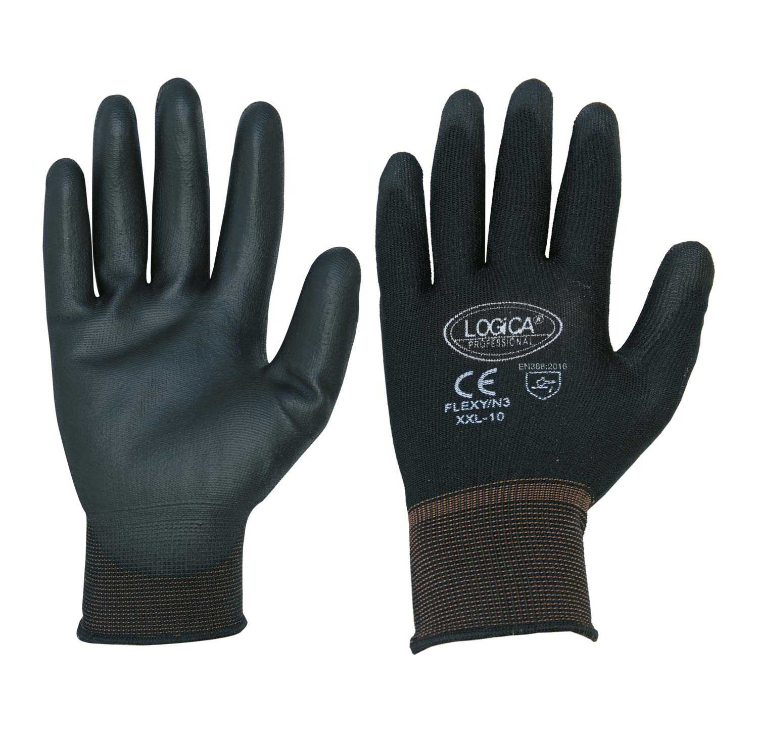DESCRIZIONE: Guanto in filo continuo di poliestere, palmo ricoperto in poliuretano. Dorso areato. Polsino elasticizzato.
